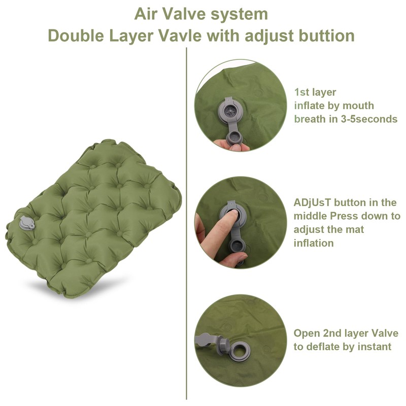 - Quick inflation: camping outdoor seat cushion easy to use with a single valve design, you can inflate quickly and fill the cushions quickly with just a few presses. When discharging, it is equally convenient to press the valve lightly to release the air quickly and take up no space