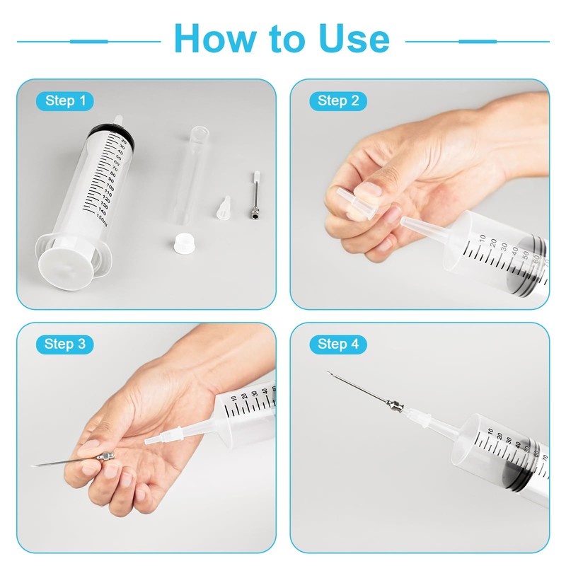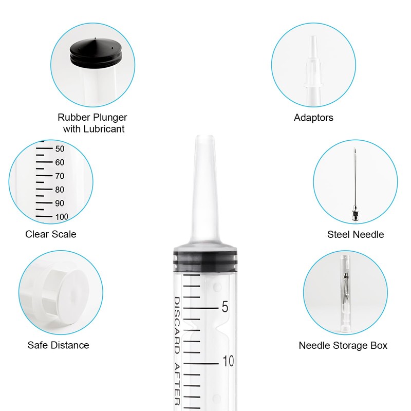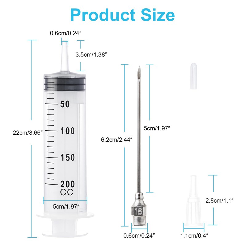 - Package IncludesOur products include 1 x 200ml syringe,1 x adapters,1 x stainless steel needle to meet your different usage scenarios.Each syringe is individually sealed and equipped with a sealing cap, making it cleaner and safer.