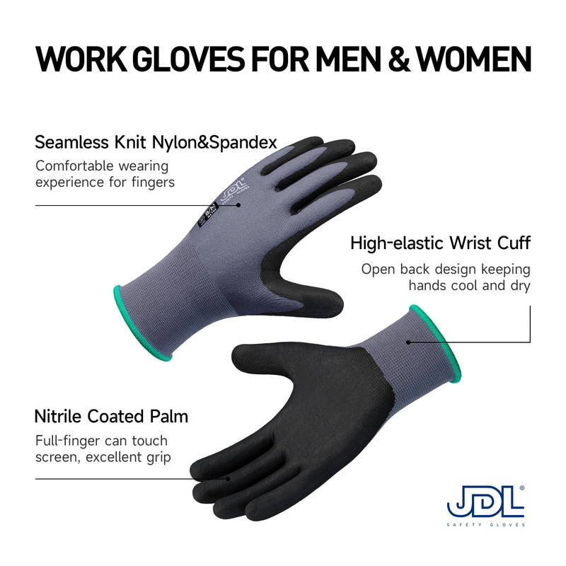 - Touchscreen & Protective: Our work gloves are coated with foam nitrile, you can touch screen phone or device without removing gloves. Excellent grip performance allows you to have excellent protection even in damp and rough conditions. Elastic cuff keeps dirt and debris out.