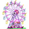 JDMDKB Rotating Ferris Wheel Building Blocks Kit, with Lights, Amusement Park, Construction Toy Set for 8+ Children and Adults (Pink)