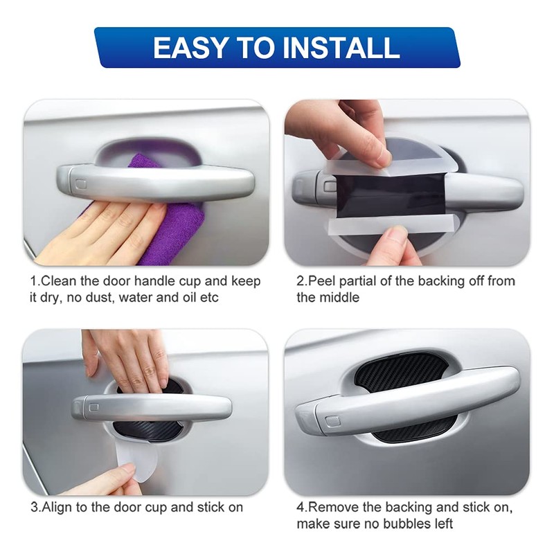 - Firm & Markless: The door handle sticker has a strong adhesive that makes it stay firmly in place. It is designed with innovative gel which can be washed and reused. It won't leave any damage or marks on your vehicle's painted surface when takes off