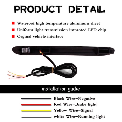 - Connect black wire to brake light negative, white wire to tail lights positive, yellow wire to signal light positive and red wire to brake light positive; It works at 12V~24V DC.