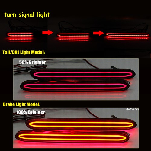 - It replaces the stock Rear Bumper Red Reflector Assembly and functions as Add-on LED Tail Running /Rear Fog Light (50% led Brighter), Brake Stop Light (100% led Brighter) and Sequential Turn Signal Indicator Light in OEM fitment