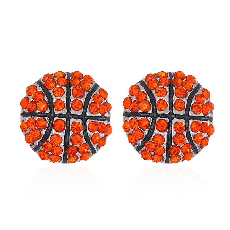 JDONL Unique Rhinestone Stud Earrings Cute Basketball Baseball Football Rugby Shiny Crystal Sport Earrings Jewelry Gift for Women (Basketball)