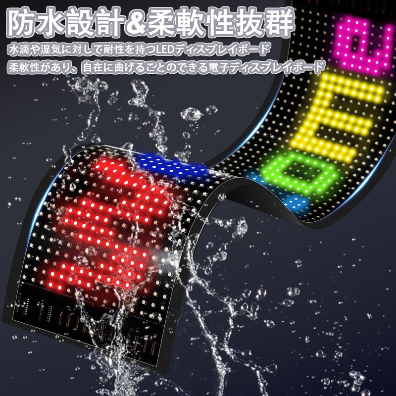 - 【High Quality Flexible Display Board - Can be bent and sticked! This LED message board has a high quality flexible screen. It can be bent or pasted to curved surfaces. It can be used on the rear glass of your car for a wide range of uses, such as rear-facing messages, team name appales, show window guidance and event sales information