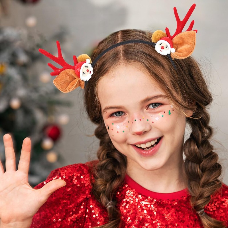 - Christmas hair hoops is made of soft plush,decorated antlers,headband,and cute Santa Claus.All of these details make the Christmas headband extra cute and festive for your holiday costumes and outfits.