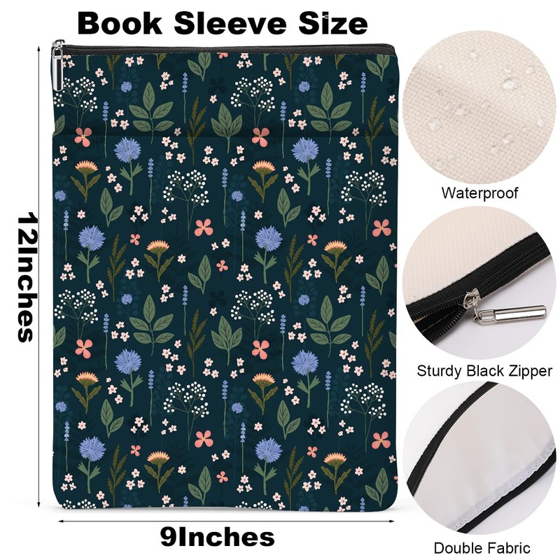 jealance Wildflower Pattern Book Lovers Gifts Waterproof Book Sleeve Book Pouch Book Protector with Zipper and Front Pocket BookCover Case for Women Girl Readers Librarian Book Accessories Book Club Gifts