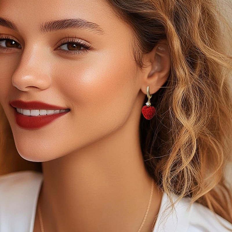 - Cute red heart love earrings with cubic zirconia are in a special design, heart-shaped design inlaid with red CZ are a timeless fashion accessory.