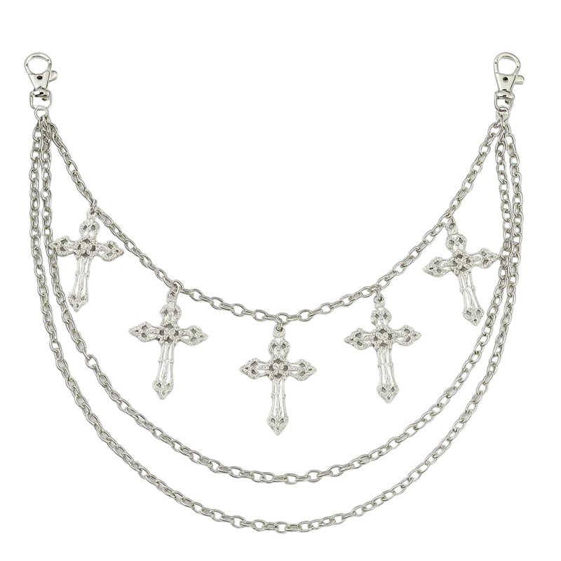 - Edgy Design: This jean chain features a bold punk aesthetic that suit any outfit; The trouser chain unique cross detailing and durable construction make it a standout accessory for both men and women; Ideal for those who love to make a fashion statement with their jeans or trousers
