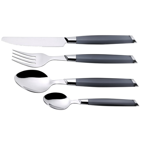 Jean Dubost 20274 Besteckgarnitur, abgewinkeltes Design, zweifarbig, grau, 24-teilig