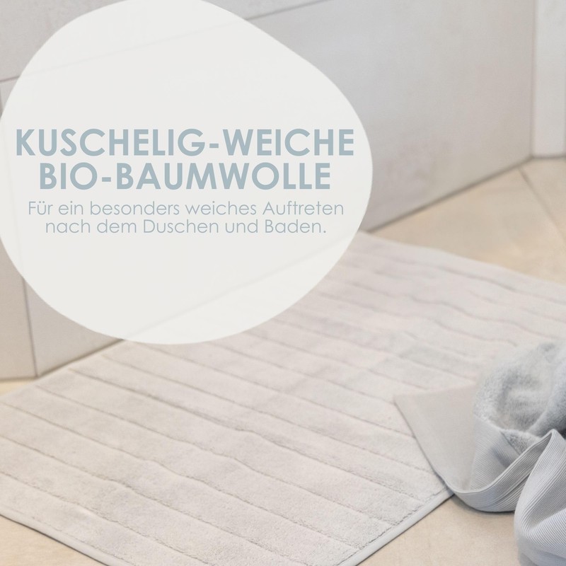 Jean & Len Non-Slip Bath Mat, Made of 100% Cotton, with Non-Slip Coating on the Underside, Washing Machine & Tumble Dryer, Quick-Drying, Bath Mat 50 x 70 cm