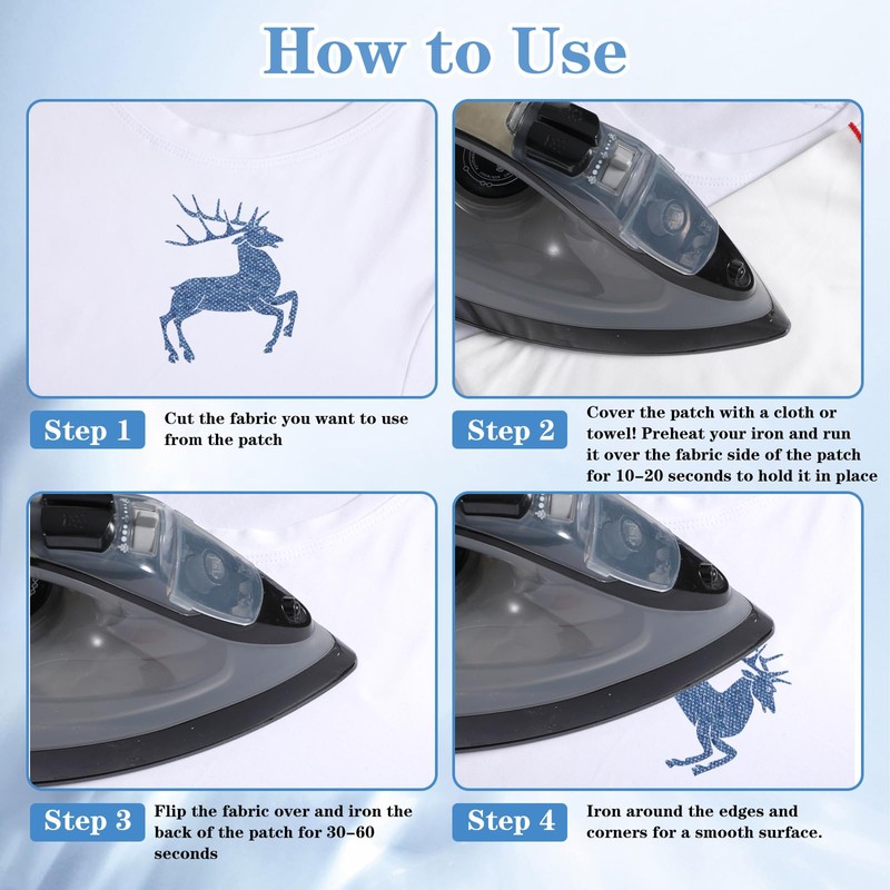 - Easy to use: these jeans iron-on patches are easy to use, just need to iron it for 5-10 minutes according to the actual situation, make sure that the hot melt adhesive is firmly glued to the clothes, you can also use sewing reinforcement