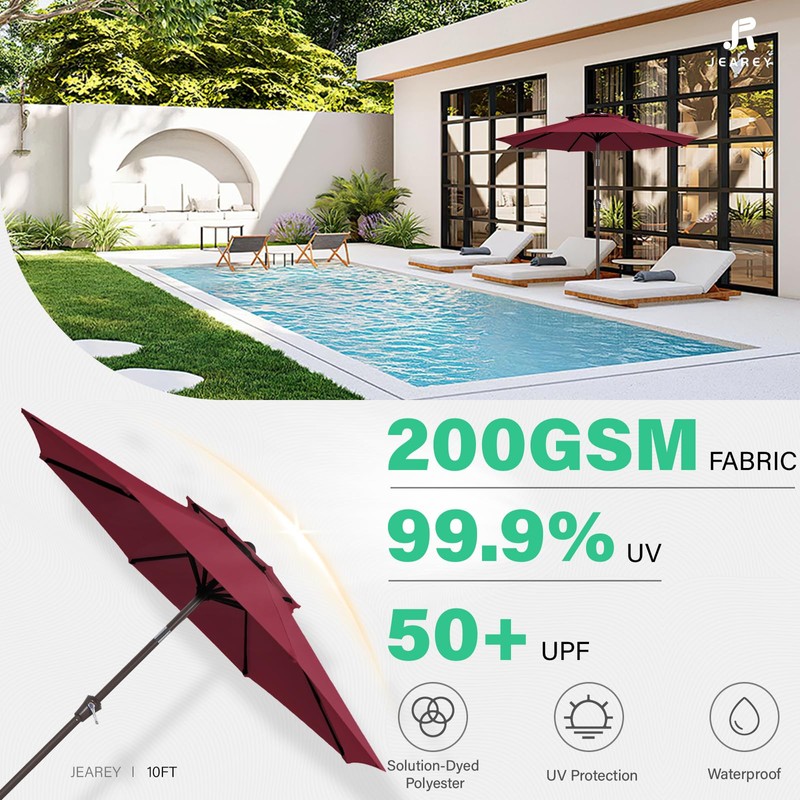 JEAREY 10' 2-Tiers Patio Umbrellas Outdoor Table Market Umbrella w/Push Button Tilt/Crank, 8 Sturdy Ribs, UV Protection Waterproof Sunproof(Burgandy)
