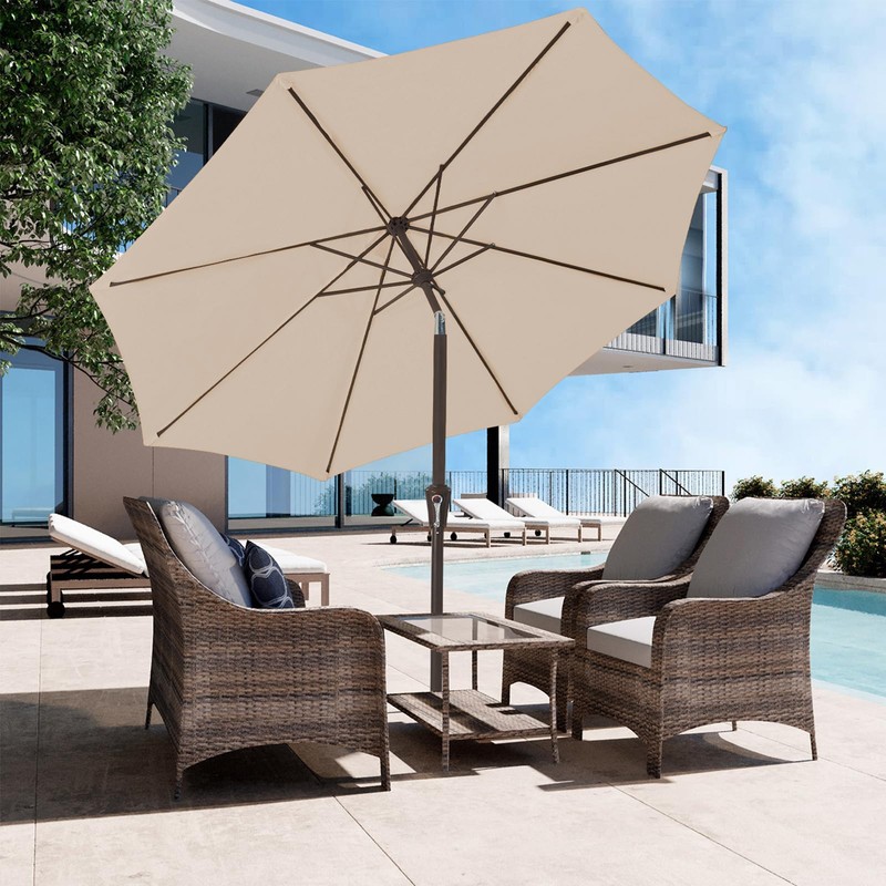 JEAREY 9FT Outdoor Patio Umbrella Outdoor Table Umbrella with Push Button Tilt and Crank, Market Umbrella 8 Sturdy Ribs UV Protection Waterproof for Garden, Deck, Backyard, Pool (Cream Beige)