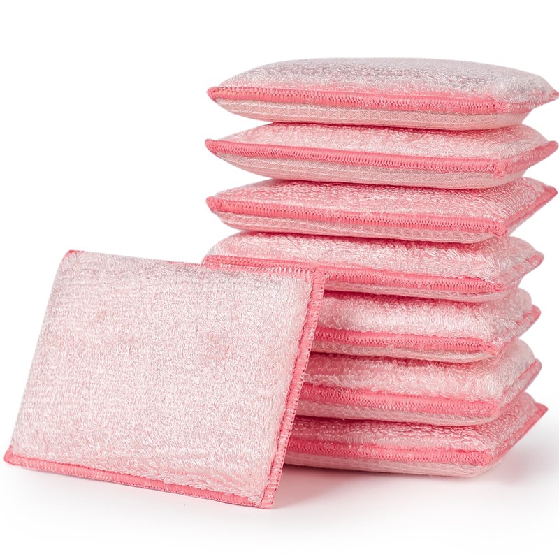 JEBBLAS - Esponjas absorbentes de bambú naturales para limpieza de cocina, reutilizables, color rosa (8 unidades)