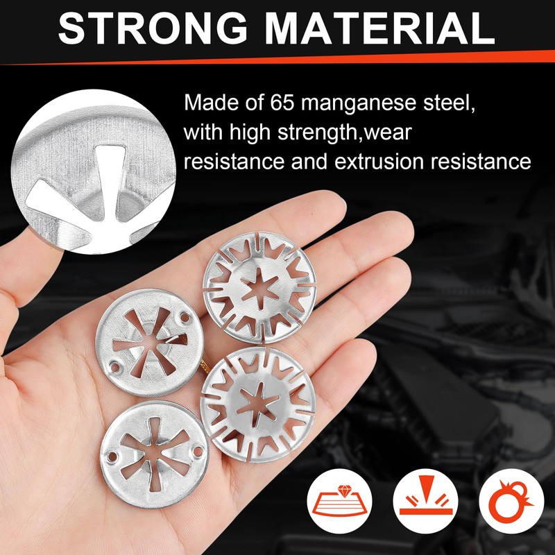 - 【Exhaust Heat Shield Repair Kit 】The heat shield clip is a kind of metal gasket, usually used as a fixing clip and heat insulation plate under the hood. In addition, it can also be used to replace worn or broken clamping washers to ensure that the function of the thermal protection plate is not limited