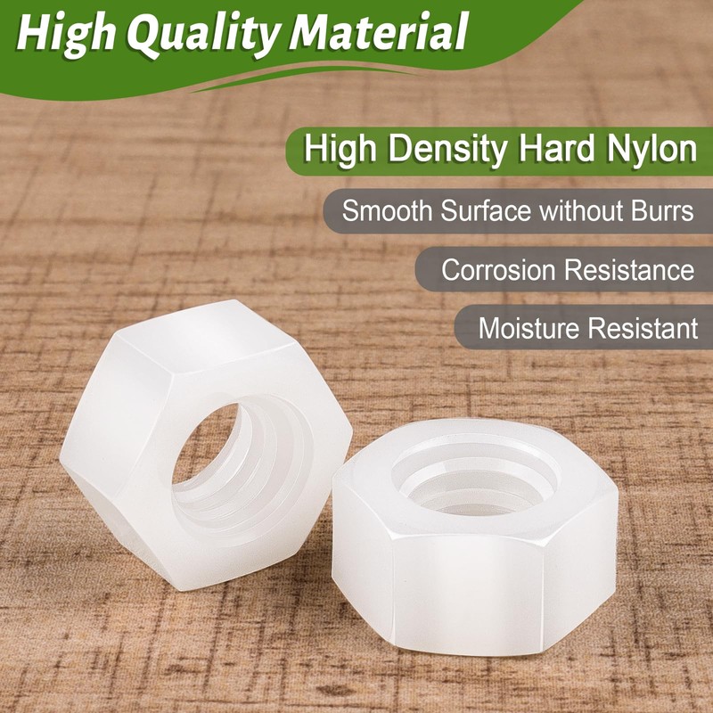 - Nylon nuts are great for use in wood and humid environments, significantly reducing loosening under vibration and torque