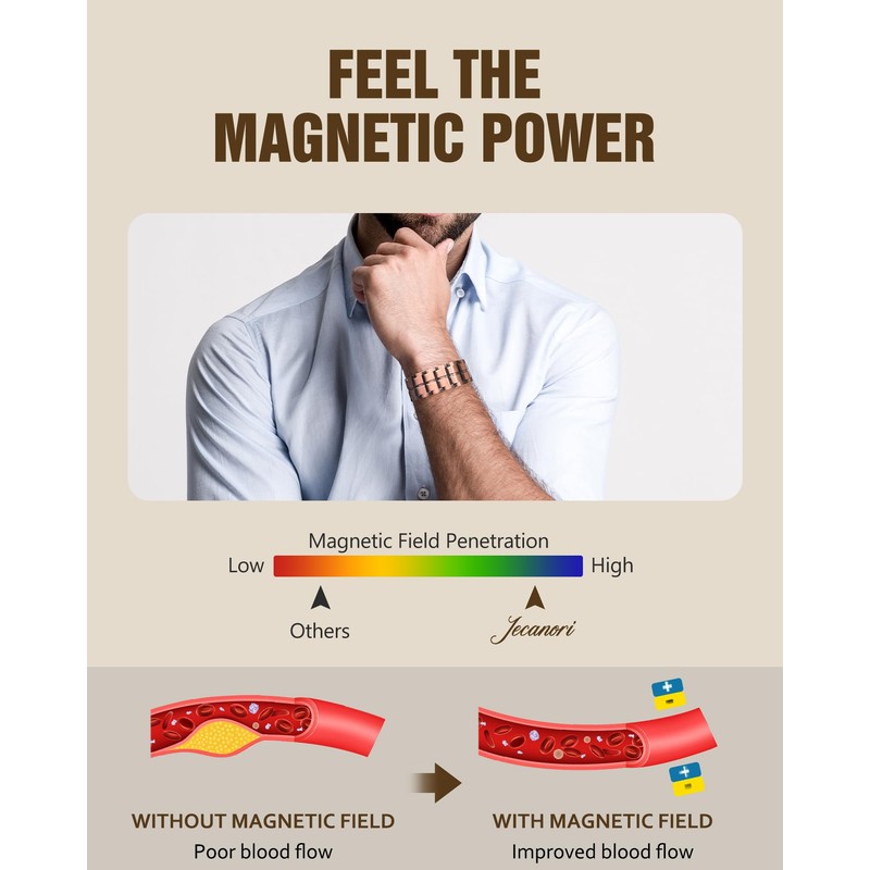 Jecanori 3X Strength Copper Magnetic Bracelet for Men,Pure Copper Bracelet Included Adjustable Sizing Tool