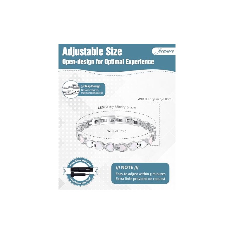 Jecanori Jecanori Magnetic Bracelets for Women - Titanium Steel Magnetic Bracelet - 3800 Gauss Ultra Strength Magnets - Adjustable Length Wristband with Gift Box