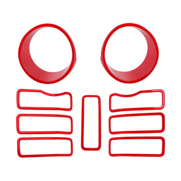 JeCar Front Grille Inserts/Headlight Trim Covers Decoration Kit Compatible with Jeep Wrangler 2024 JL JLU & Gladiator JT 2024, Red