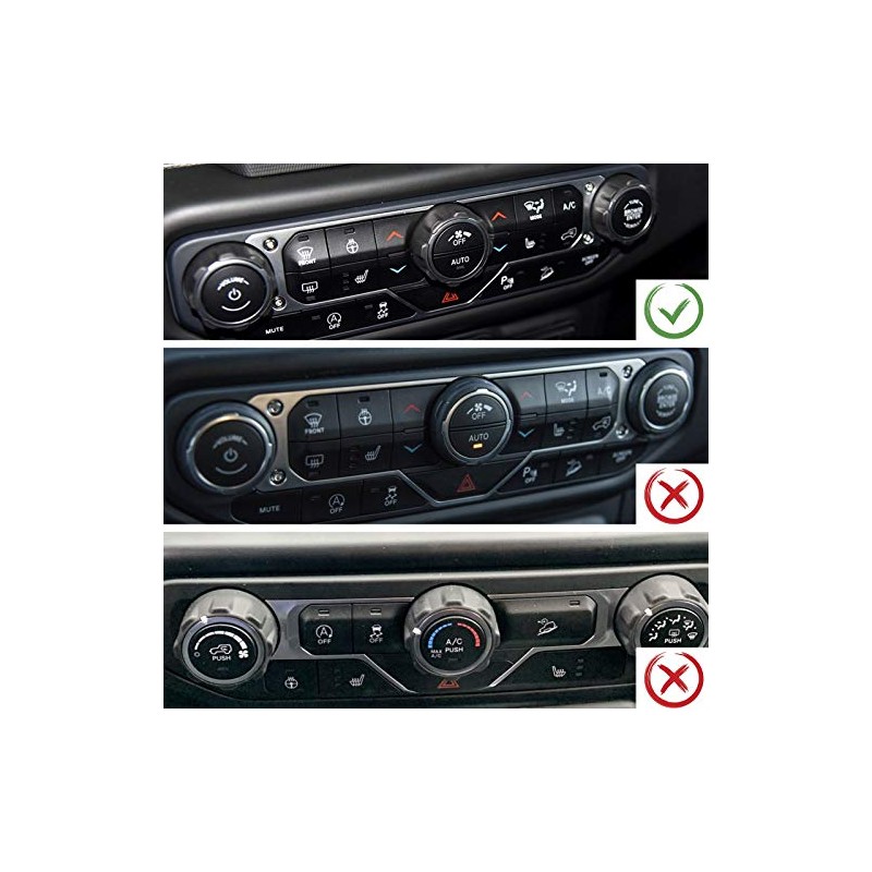 • Compatible with Jeep Wrangler 2018 2019 2020 2021 2022 2023 JL JLU & 2020 2021 2022 2023 Gladiator JT. The JL and JT have 3 different kinds of AC control knobs (see #2 product picture). Please compare your AC knobs with our picture before you purchase.