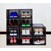 - [EXCELLENT PROCESS TECHNOLOGIES, BEAUTIFUL & GENEROUS] Each side of the shoe case is beautiful and generous. The material surface is smooth and will not scratch your hands. Colors of clear and black is basic hue, suitable for various home styles. [ENVIRONMENT-FRIENDLY HIGH QUALITY PP MATERIALS SELECTED] Fresh and tasteless, feel at ease. [THE HANDLE IS ALSO A VENT]To keep air ventilation.