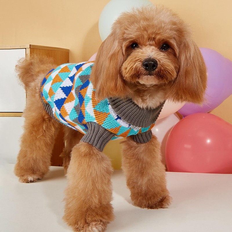 Cute and stylish:Turtleneck Knit Colorful Geometric Dog Sweater