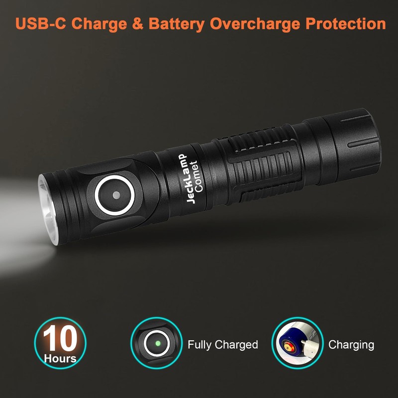 - Rotating Flashlight with Headband:JeckLamp edc flashlight is designed with a 90 degree rotatable head, this 90 degree flashlight with Headband is designed to meet your everyday needs.