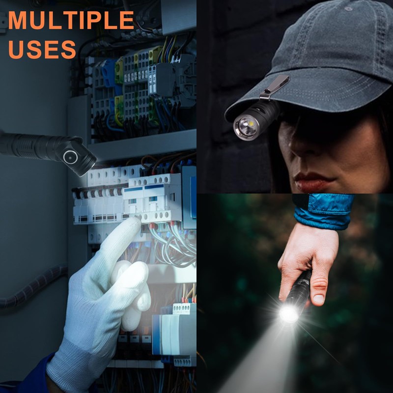 JECKLAMP 90 Degree EDC Flashlight, 1200 High Lumens Magnetic Flashlight with Clip, 6 Modes Rechargeable Led Headlamp, Pocket Tactical Flashlight for Working, Camping(Battery Included)