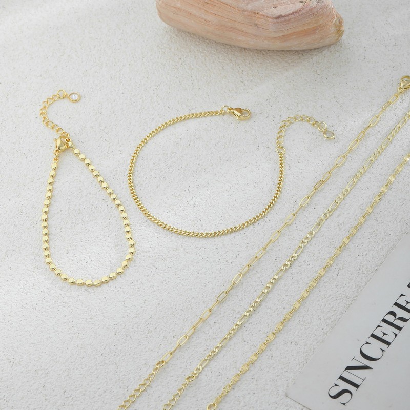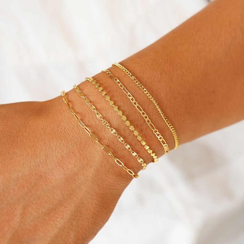 • 5-Piece Stackable Set: Mix and match 5 trendy chains: Chain of dots, Prism Chain, Cuban Chain, Paper Clip Chain, and Figaro Chain. Each dainty bracelet shines with a luxe, high-polish finish, creating a layered look that’s lightweight yet eye-catching—perfect for everyday wear or special occasions