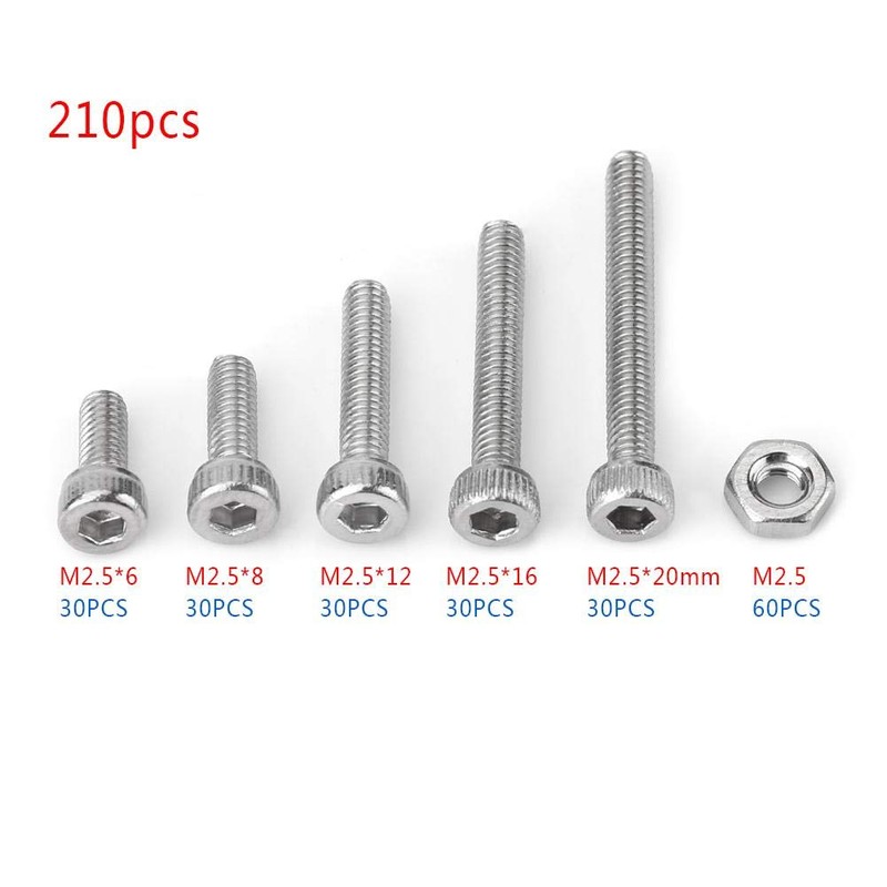 Jectse Hex Socket Cap Head Screws and Nuts Set, 210pcs M2.5 Stainless Steel SS304