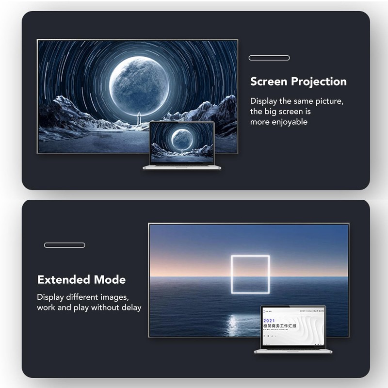 2. 8K Ultra HD: The 8K Mini DisplayPort to HDMI adapter supports Ultra HD resolutions up to 8K (7680x4320P) 60Hz, 4K 120Hz. You can connect the 8K Mini Displayport converter to the Mini Displayport port on your PC or laptop, and then connect the Displayport input to the HDMI display via a separate HDMI cable (not included) . This is the ideal solution for sharing presentations, videos and games on the big screen.