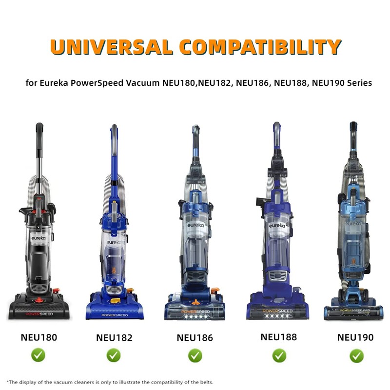 - Amplia compatibilidad: estos cinturones se adaptan perfectamente al aspiradora ligero Eureka PowerSpeed, se adapta a los modelos NEU180, NEU180B, NEU180C, NEU182, NEU182A, NEU186, NEU188 y NEU188A.