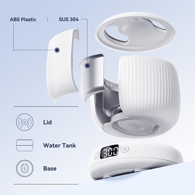 • Usage Tips & Troubleshooting | If the screen displays “000” or “888,” it usually means the copper contact pins between the tank and the base are dirty or misaligned. Please wipe both contact points with a dry cloth before use. To ensure safe and proper operation, always use the original charger, avoid immersing the base in water, and follow the user manual instructions. For detailed guidance, please scan the QR code on the retainer cleaner’s user manual before first use.