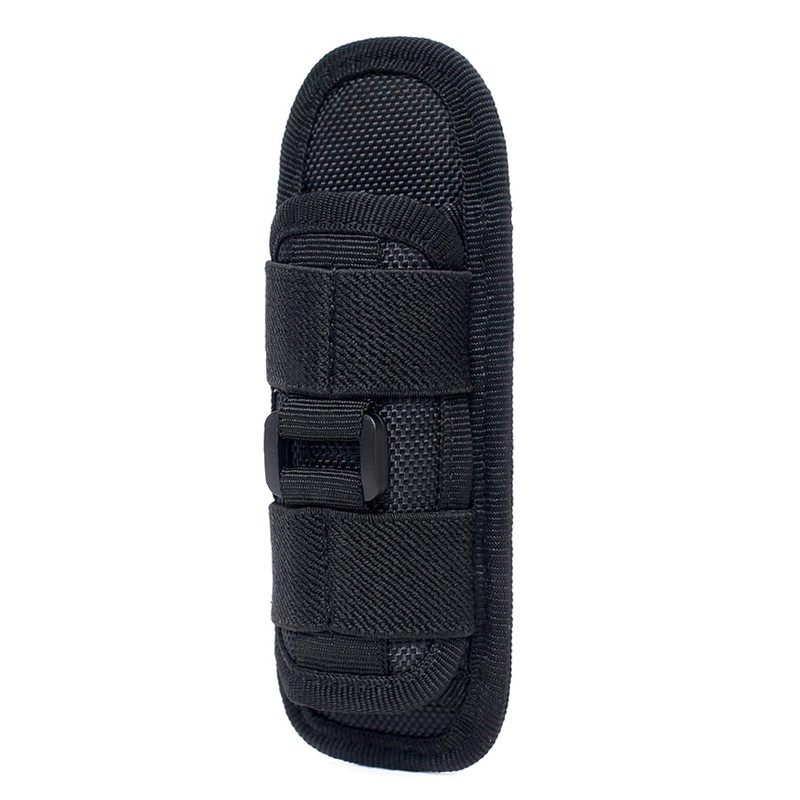 - Molle System: Flashlight pouch with hook and loop closure and button on the back for attaching to a belt or molle device
