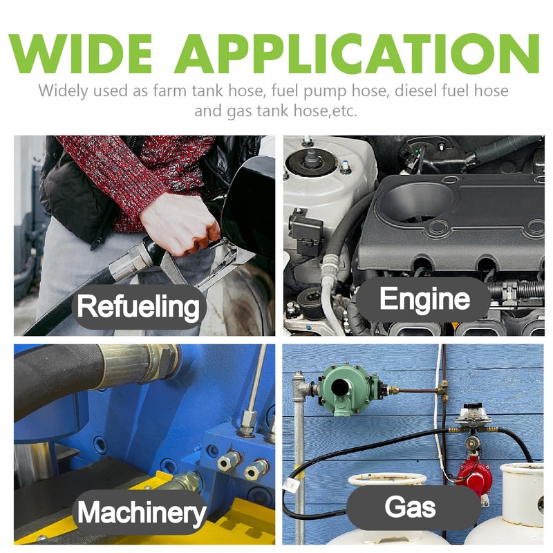 - Material:Nitrile rubber inner, stainless steel braid in the mid, PVC and Nitrile blended rubber outer, this fuel transfer hose is designed to withstand the effects of various fuels and fluids. The rubber material offers excellent durability, flexibility, and resistance to abrasion, ensuring a long service life even when exposed to harsh conditions.