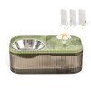 JEERAMIA Cat Water Fountain and Food Bowl, 3L/101oz Ultra Quiet Pet Water Dispenser with Smart Pump and 3 Replacement Filters, Automatic Flower Fountain & Stainless Steel Bowl (Black & Green)