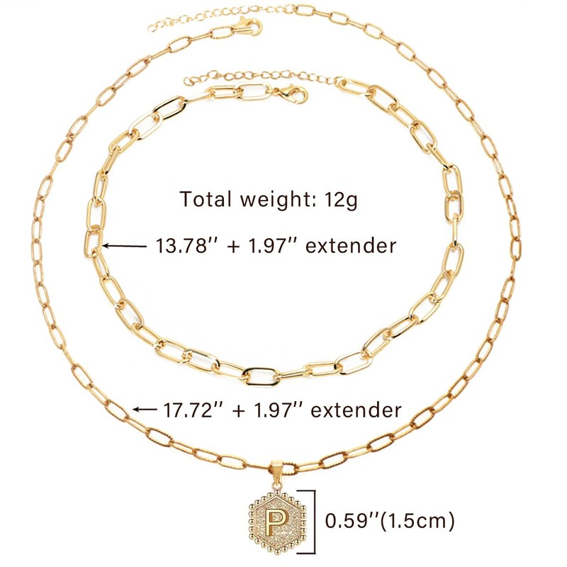 - Size Information: Letter pendant: 0.59''. Larger Paperclip chain length: 13.78''(35cm)+1.97''(extender 5cm). Smaller Paperclip Letter Pendant chain length: 17.72''(45cm)+1.97''(extender 5cm). Total Weight: 12g. So lightweight you don¡¯t even realize you have them in. Been wearing them non stop, bed, shower, swimming, Love them.