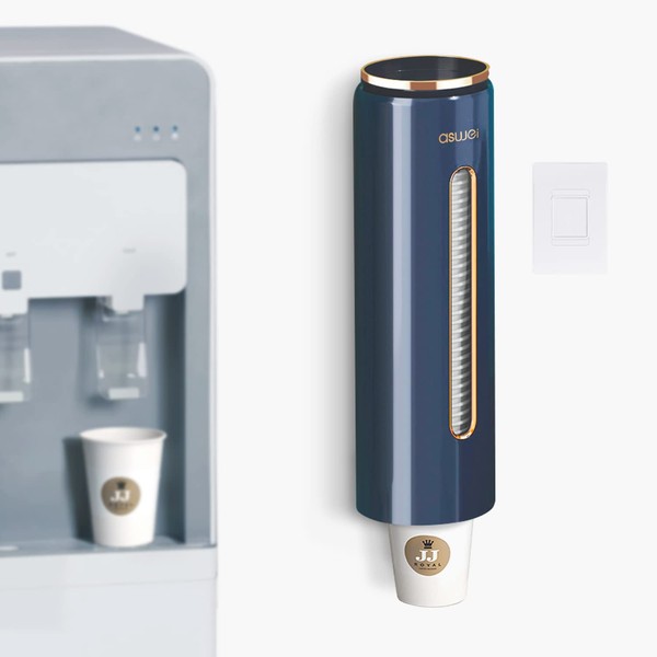 JEEZAO Cup Dispenser Wall Mounted,Water Cup Holder Dustproof Plastic for Disposable Paper Cups and Paper Cones (blue)