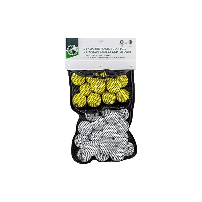12 Yellow foam and 24 white air-flo practice balls in a mesh storage bag
