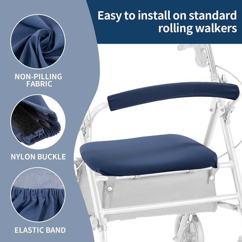 - ROLLATOR PROTECTOR - Made with Polyester fiber, elastic fabric.Use the rollator cover set to protect the seat and back rest from daily wear and tear.Soft touch, breathable on the skin,machine washable and durable.