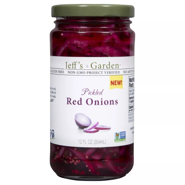 No artificial flavors or colors. Certified gluten free. Certified vegan. Non-GMO Project verified. New! Family owned since 1935. Our Story: At Jeff's Garden, we are passionate about tasty, healthy eating: we cook, create, share and enjoy, and invite you to do the same. Our pickled red onions add a tangy and sweet burst of flavor and crunch to salads, sandwiches or any culinary creation. For more exciting recipes and tips, we invite you to visit us at. Please recycle. Product of USA.