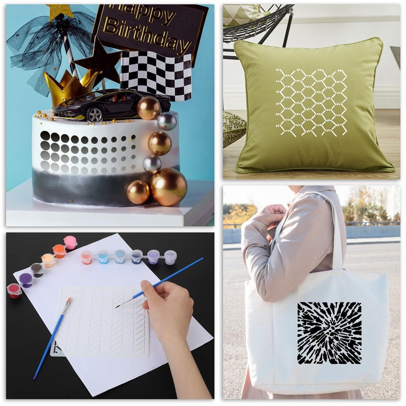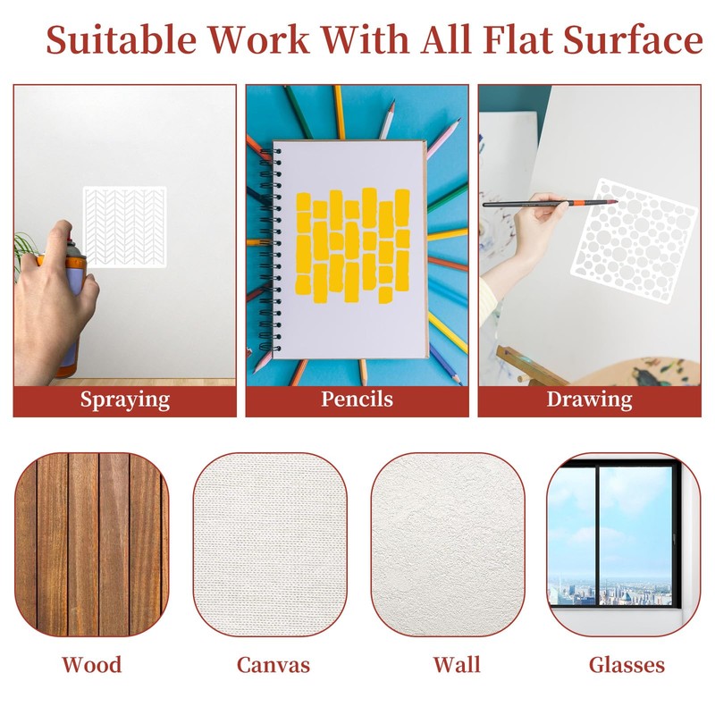 - 【Wide Application】Our geometric pattern stencils can be used in various DIY projects, such as for wood signs, wood signs, flooring, furniture, wall designs, and scrapbooking, just wash it after use and you can continue to use it next time.