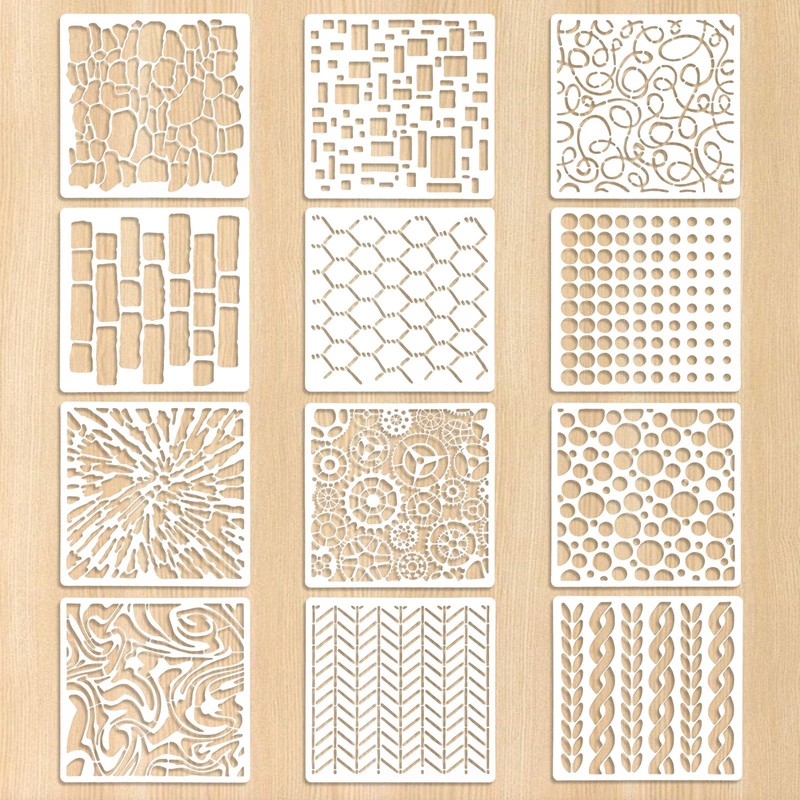 - 【Texture Stencils】Our texture stencils for crafting set include 12 patterns in different sizes and shapes. Textures include background styles such as dense leopard print, polygonal texture, dense wavy texture, etc. With these coloring templates, you have a lot to choose from.