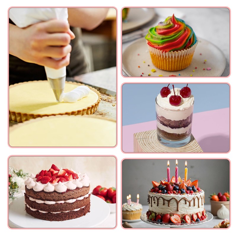 - Creative cake making: with these piping tips, you can draw and write on cakes, cupcakes and biscuits to achieve the desired icing effect. A baking tool for decorating cream cakes, used with piping bags.