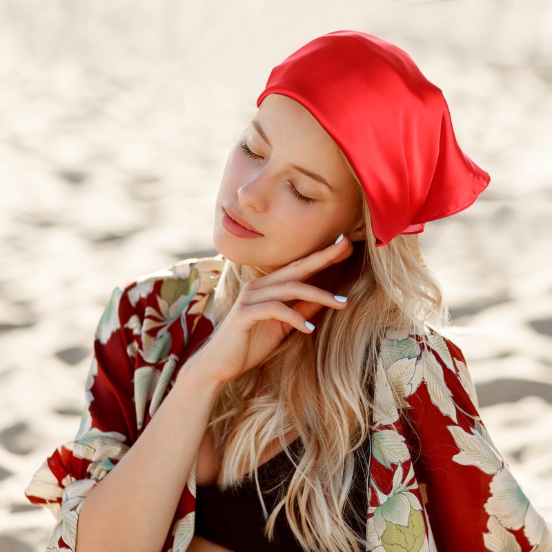 - Perfect size: the size of the hair towel is approx. 70 x 70 cm / 27.6 x 27.6 inches, this silk scarf can be folded into rectangle, triangle, elongated shape and some other shapes. Different folded shapes provide different looks to match your clothes. Use the silk scarf as a scarf, bracelet and headscarf and as jewellery for handbag, belt or hat.