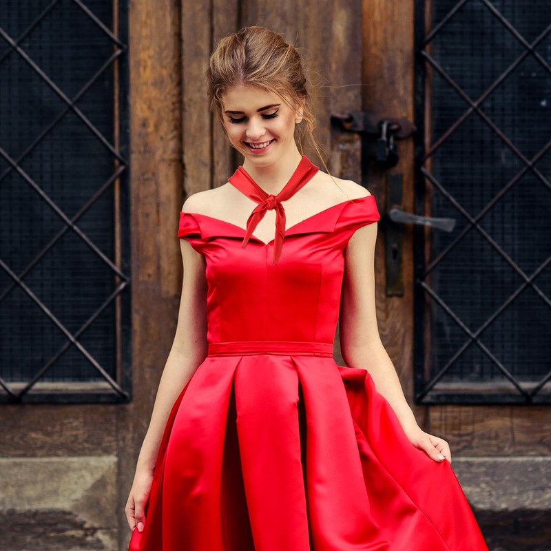 Jeffdad Women's Square Scarf, Plain Bandana, Summer Scarves, Hair Scarf, Lightweight Neckerchief, Headscarf, Silk-Like Satin Scarf, Silk Scarves for Women, 70 x 70 cm, red