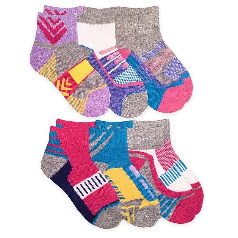 Jefferies Socks Girl's Tech Sport Colorful Pattern Quarter Half Cushion Socks 6 Pair Pack, Multi, Medium