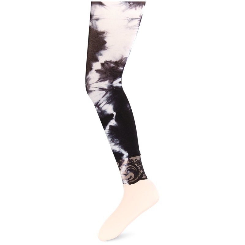 Jefferies Socks Girls 7-16 Lace Tie Dye Footless Tights, Black, 6-8