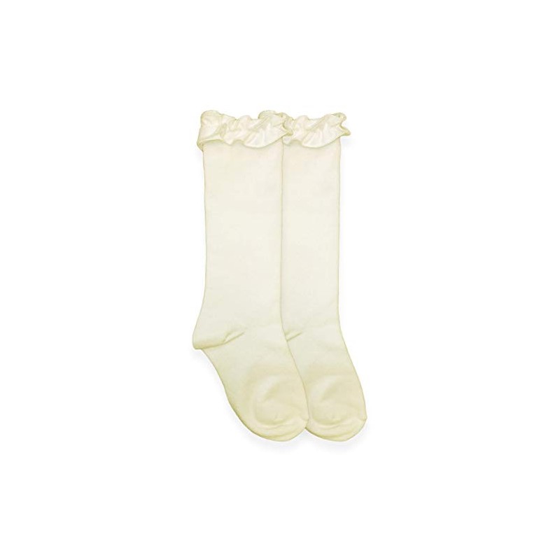 Jefferies Socks Little Girls Ruffle Knee High Socks, Ivory, Medium